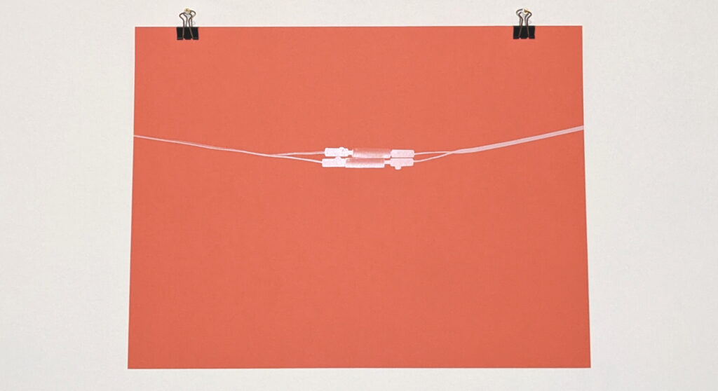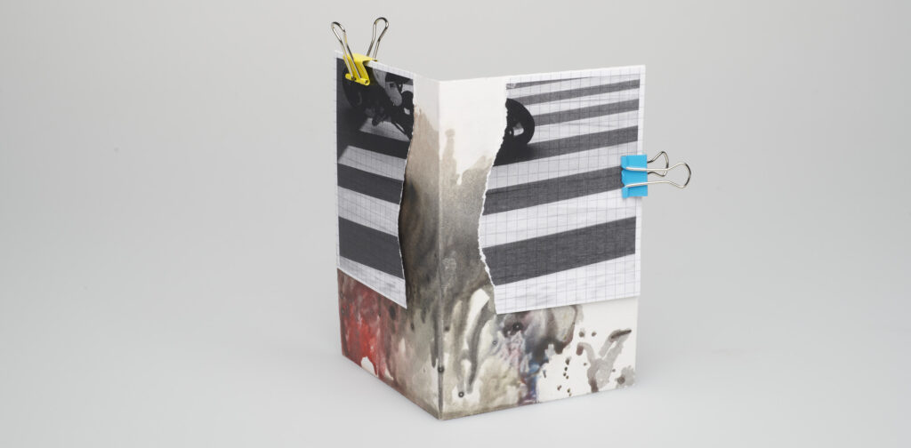 Foldback staples on cardboard, 15 x 20 cm)